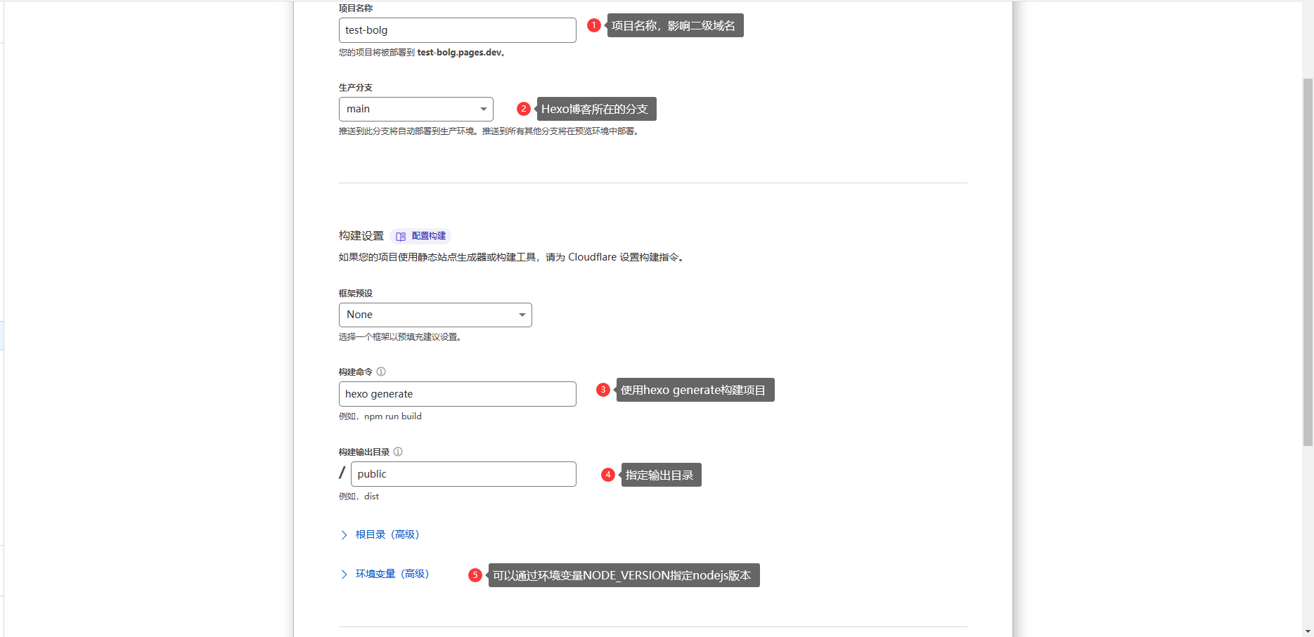 Hexo 7.0.0 发布后,由于依赖包变化,最低需要使用 nodejs v14.x.x,需要配置环境变量NODE_VERSION环境变量不是必须的,NODE_VERSION为 v14+,错误的配置会导致构建失败,可以参考下图